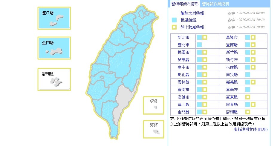 ▲氣象局對全台20縣市發布低溫特報。(圖/截自中央氣象局官網)