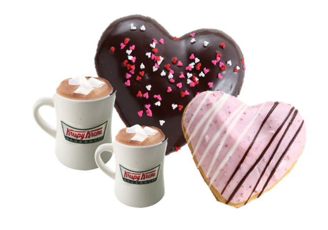 Krispy Kreme從2月13日到2月14日一連兩天推出「情人節限定夾心甜甜圈」共有甜心寶貝及濃情寶貝兩款口味,分別以白巧力、黑巧克力搭配檸檬醬及覆盆莓子醬內餡,每個售價40元,另有12入裝的甜甜圈禮盒;同時也端出限量套餐組,只要購買2個甜心寶貝甜甜圈,再加2杯任意口味的中杯飲料,就享限定價205元。業者表示,自去年推出草莓起司、卡士達夾心口味深受消費者喜愛,今年則規劃酸甜口感的風味讓民眾能與另一伴、朋友共度甜滋滋的情人節。