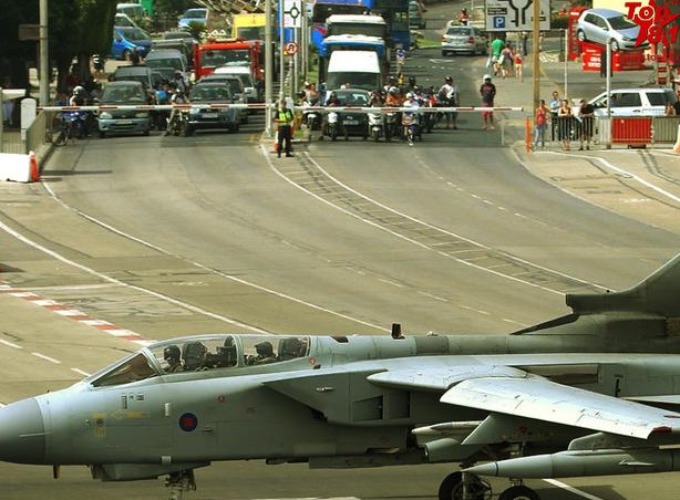 日前,由英國、德國以及義大利聯合研發,可配備各式空對空、反艦、巡弋飛彈以及雷射導引炸彈,堪稱西方聯軍打擊「伊斯蘭國」的主力戰機「龍捲風戰機」,在抵達直布羅陀後,也在這條全世界唯一一個集跑道、車道以及行人道於一身的機場跑道滑行,這超違和的畫面,就連常常看飛機在馬路上行走的直布羅陀民眾,也看傻了眼!