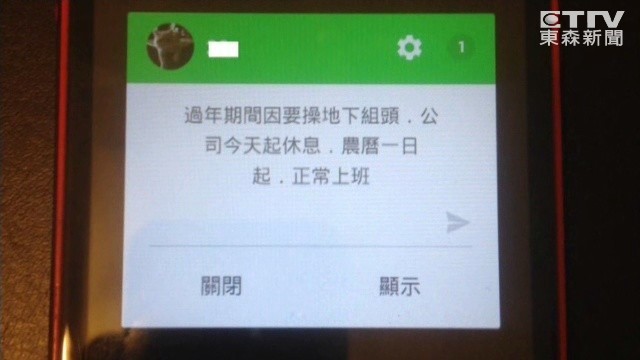 媳婦被逮時正在接收電話傳真過來的資料,尷尬的是,她的手機還噹噹噹響個不停,原來是婆婆傳過來的LINE,寫道「休息到大年初一就開工」,後來婆婆回家也被抓,還怪罪媳婦說,警察來了怎麼沒有通知她?