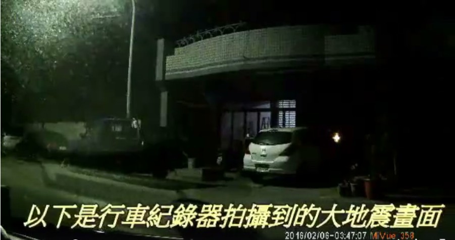 1分半鐘的行車紀錄器共拍下3次大幅搖晃,小貨車被晃到前後搖擺,路燈也上下被震動,發出嘰嘰嘰的聲響,連街貓都嚇到躲到汽車底下。附近住戶也被突如其來的震動嚇醒,紛紛開燈查看,並且拉起鐵捲門以利逃生。