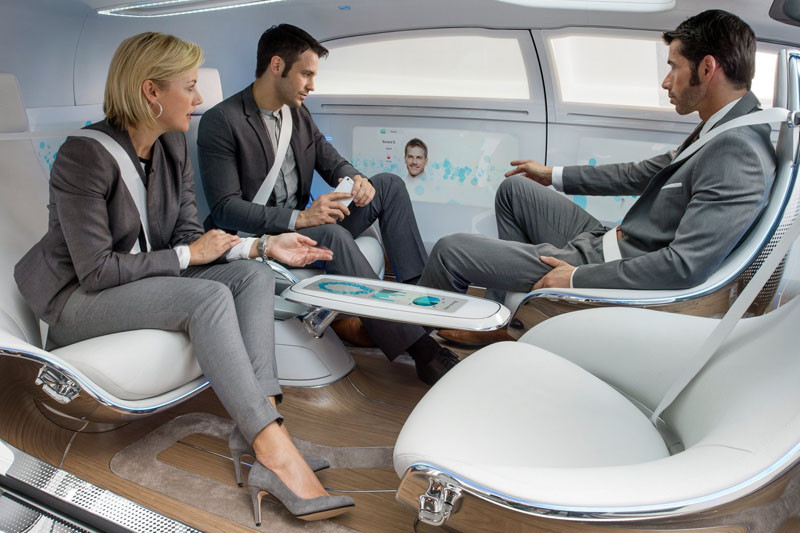 去年台北車展前,在信義區街頭造成轟動的Mercedes-Benz F 015 Luxury in Motion概念車,其實不只是外表充滿未來感,就連內裝也顛覆傳統對於「汽車」的認知,當進入自動駕駛模式時,兩張前座椅向後一轉,車上乘員就能如身處Lounge般輕鬆交談,環繞在車艙的大型顯示幕還能有更多的娛樂應用,旅途再也不是漫長的。