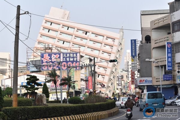 ▲台南大地震的災情慘重,新化中山路上的京城銀8層電梯大樓倒塌。(圖/記者李毓康攝)