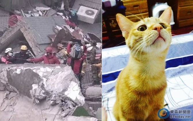 「找到我們家的貓啊!我們家的貓啊!」一看到自己家的貓咪被順利救出,住在維冠金龍大樓10樓的住戶胡先生眼淚奪眶而出,他兩名分別6歲和7歲的兒子當時還受困在倒塌的建築物內,胡先生說,兩個孩子和貓咪感情很好,只要找到貓咪孩子就有希望。