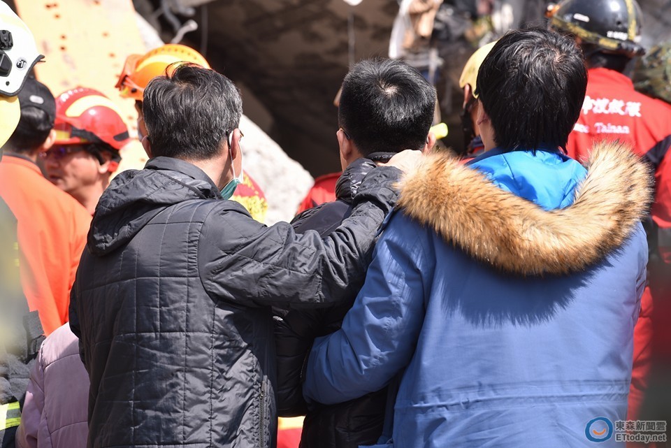 ▲維冠大樓外家屬心急等待。(圖/記者李毓康攝,下同)