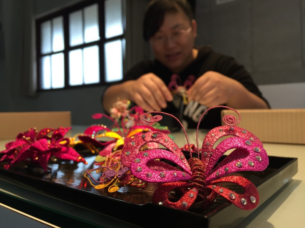 板橋435藝文特區藝術家匯集,園區充滿藝文氣息,就連工作人員也各個才華洋溢,服務台人員陳湘琳就是傳統工藝纏花藝術的高手,平時除在園區熱心服務外,工作之餘也埋首鑽研民間工藝,10日(春節初三)將舉辦纏花DIY課程,帶民眾巧手做纏花,以傳統美學的角度,運用巧思創造出一件件實用、吸睛的造型品!