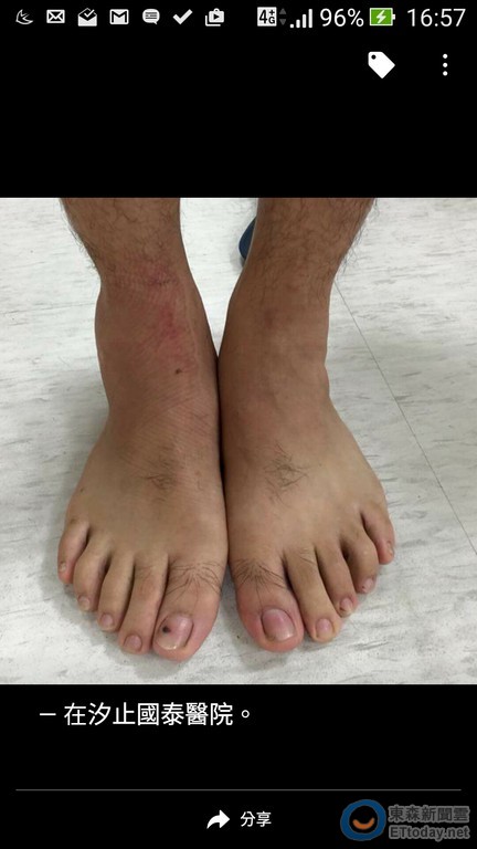 ▲新北特搜聚秀峰分隊小隊長李元隆在友援維冠救災首晚就被電線絆到而扭傷腳踝,但他自行簡易療傷後,即再投入救災,直到任務結束才去掛急診。(圖/翻攝自李元隆臉書)
