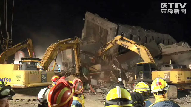 倒塌的維冠大樓,在黃金救援72小時過後,傳出令人振奮的敲擊回音!9日晚間傳出F棟14樓原已偵測到生命跡象,經過大鋼牙開挖頂部,搜救人員敲牆壁獲得對面回敲3聲,隨即停止大鋼牙作業,改以人工徒手挖掘,推測有2大2小共4人在其中,生命跡象穩定。
