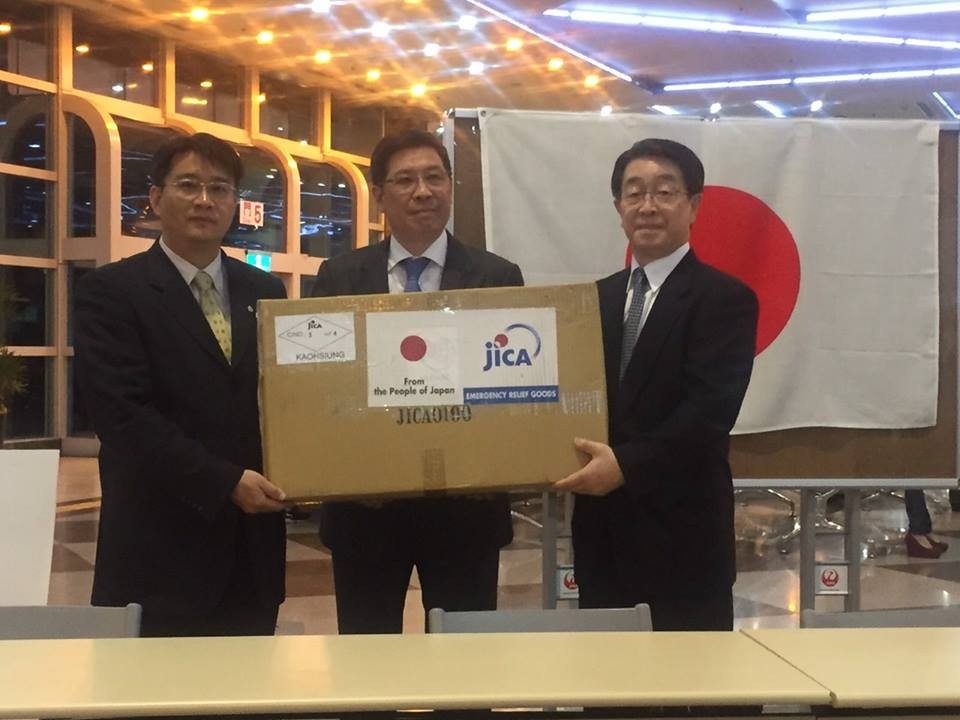 賴清德在臉書寫到,「非常感謝日本政府安倍首相,不只在地震後立刻派遣專家前來了解狀況,更在第一時間送來援助物資,包含防潮布200張、水箱3600組。為協助解決停水地區的市民朋友取水問題,第一批壓縮式便攜水箱100組,已於昨(10)晚間10點40分由日方代表送達小港機場。」