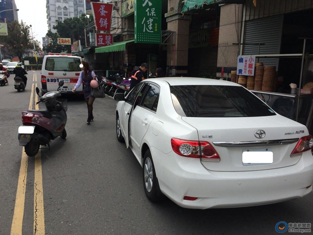 ▲路邊轎車突然開門釀禍。(圖/翻攝第二大隊後湖分隊,下同)