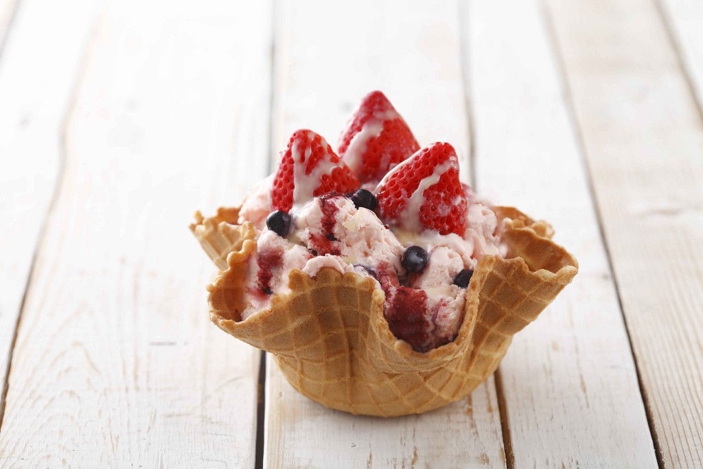 ▲COLD STONE迎接草莓季,推出戀戀草莓,以優格冰淇淋搭配原味脆餅製成,小杯售價170元、大杯220元。(圖/cold stone提供,下同)
