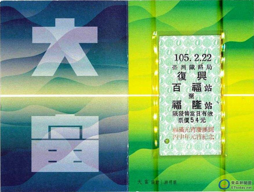 「百福-福隆元宵紀念票」外包裝採用暖色調呈現喜氣洋洋的氣氛,搭配金色猴年年符,與內頁吉祥站名「大富」呼應,為民眾帶來福氣與富貴之意涵。