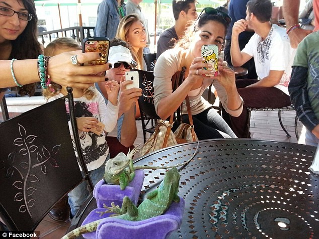 牠們的主人是舒夫柏格(Henry Schifberg),自1982年起就開始飼養牠們了。主人經常帶牠們光顧不同的咖啡店,他說,這樣可以讓蜥蜴跟人類及其他動物建立起信任及和諧關係。原文及更多照片請看這裡