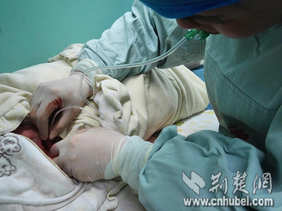 據《荊楚網》報導,一位38歲產婦16日晚間在宜昌市葛洲垻中心醫院因自然產不利,緊急進行剖腹生產,胎兒取出後,因吸入羊水胎糞等異物,導致不能哭啼,且有呼吸困難等症狀。