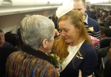 孝順的拉森決定實現母親的所有願望,19日(上周五)安排母親搭乘飛往西雅圖的班機,並且選擇在3萬5千英呎高空與交往5年的男友舉辦婚禮。飛機兩旁走道以玫瑰花及彩帶布置,拉森也請來好友擔任證婚人,機組人員及乘客變成了觀禮嘉賓。