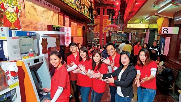 ▲在永豐銀行電子金融處長陳亭如(右2)帶領下,該行替各大宮廟打造專屬的ATM,從南到北都有廟宇合作。 (圖/商業周刊/攝影賴建宏)