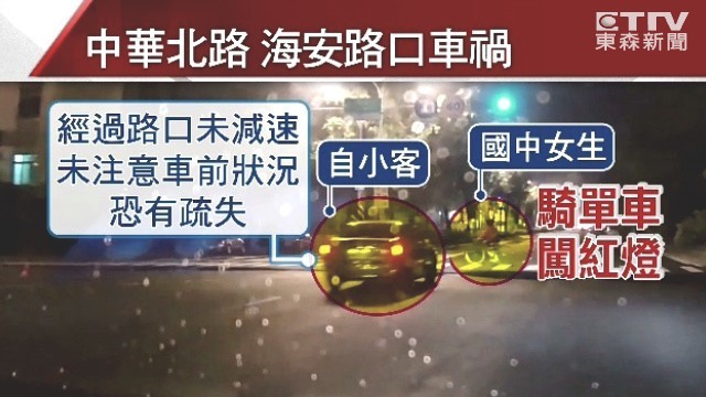 警方認為,女學生明顯闖紅燈,但肇事的自小客車在經過路口時,一直到要撞上人之前才亮起煞車燈;警方研判,駕駛疑沒遵守交通法規,經過路口應該要減速,因此也可能沒注意到車前狀況,恐怕也有疏失,但仍要進一步釐清。