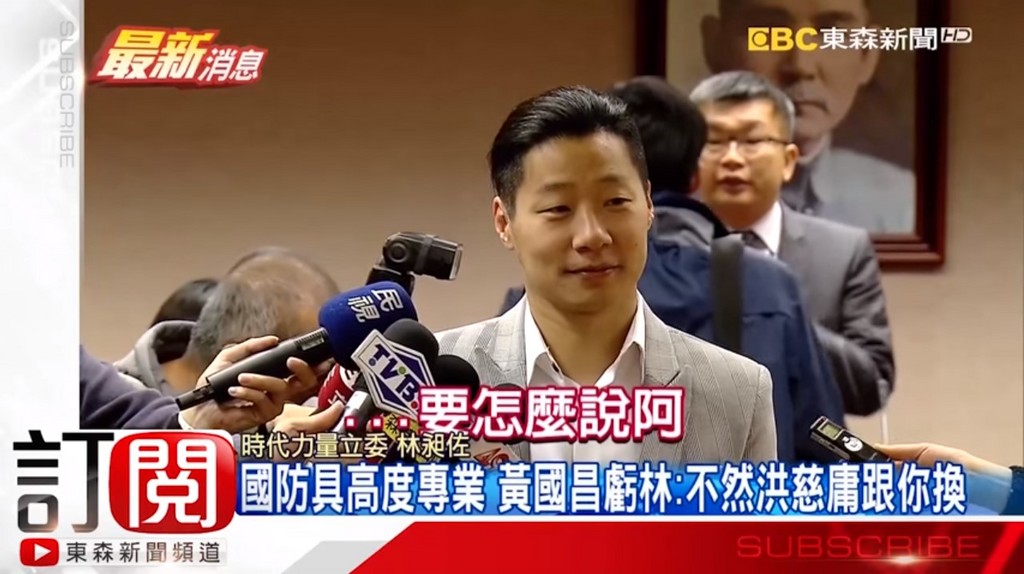 林昶佐因患有「焦慮症」被判定為免役,他曾說過想進入教育文化委員會,但抽中國防外交;當下時代立委黃國昌對林說,「不然慈庸跟你換」,讓洪慈庸聽了大笑。林接受媒體訪問一開始語塞10秒,「要怎麼說啊…沒有啦 ,就全力以赴啦!」