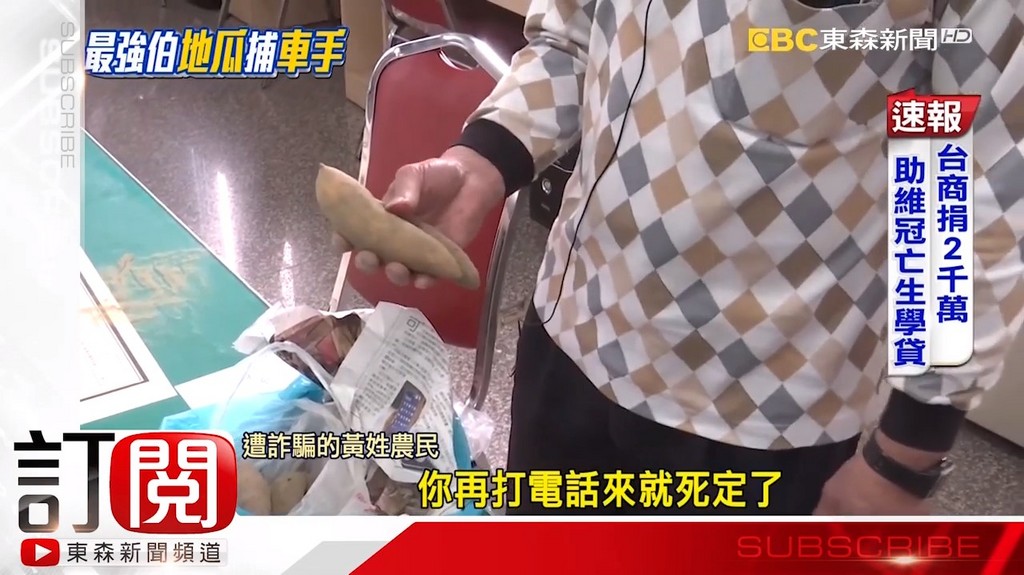 最強阿伯的反擊!嘉義縣一位黃姓農民遭16歲王姓車手騙走24萬,他趁車手再度詐騙時反擊,把自己種的3條地瓜用報紙包裹,充當現金誘騙對方出面,配合埋伏的員警一舉逮人。黃男雖高興逮到車手,但也懊惱辛苦種田賺的收入被騙走。