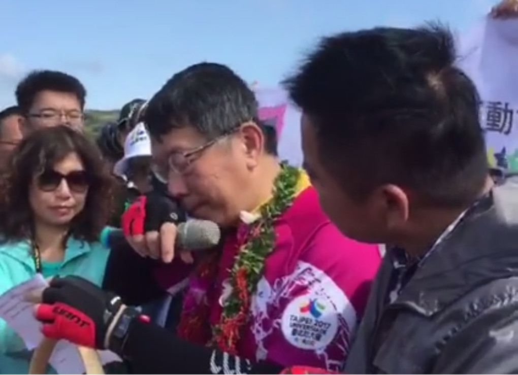 台北市長柯文哲挑戰單車「一日雙城」,最後以28.5小時抵達鵝鑾鼻燈塔圓夢。由於適逢二二八紀念日,同為市長和受難者家屬的他卻缺席紀念儀式,讓很多人不諒解。他則在燈塔前致詞時作出回應,自己沒有如去年一樣出席紀念活動,去完成「一日雙塔」的計畫,是想以「用汗水來取代淚水」、「用汗水來開啟一個寬容與諒解的未來」,講到此處,柯文哲多次哽咽落淚。