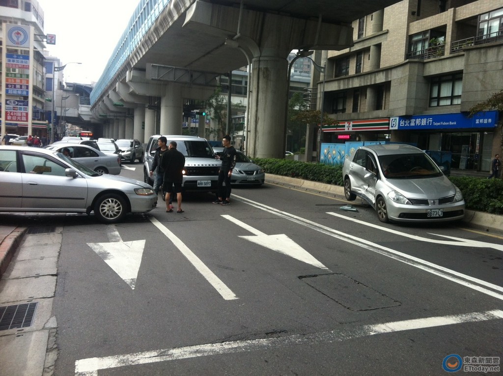 ▲肇事轎車撞上正在等紅燈的車子,另一輛休旅車差點追撞上。(圖/記者楊佩琪翻攝)
