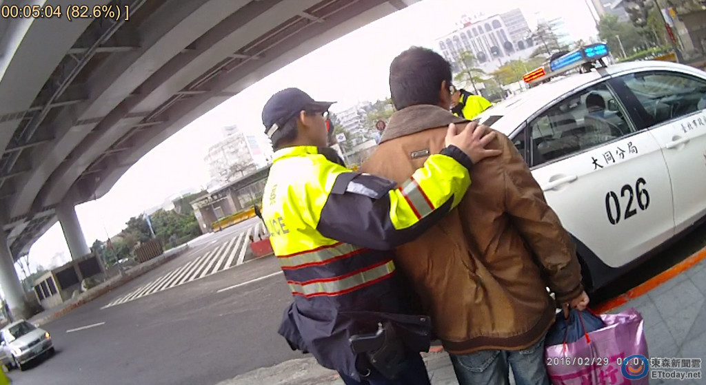▲楊姓男子拖著行李被帶回派出所,他向員警抱怨「早知道就不來台北了!」(圖/記者楊佩琪翻攝)