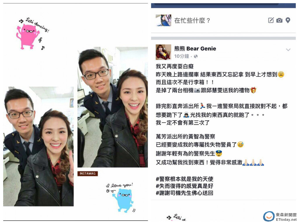 對自己一再迷糊,讓熊熊好愧疚,透過臉書向黃姓員警道謝「謝謝年輕有為的警察先生,又成功幫我找到東西,覺得非常感激。」也強調「我一定不會有第三次了!」