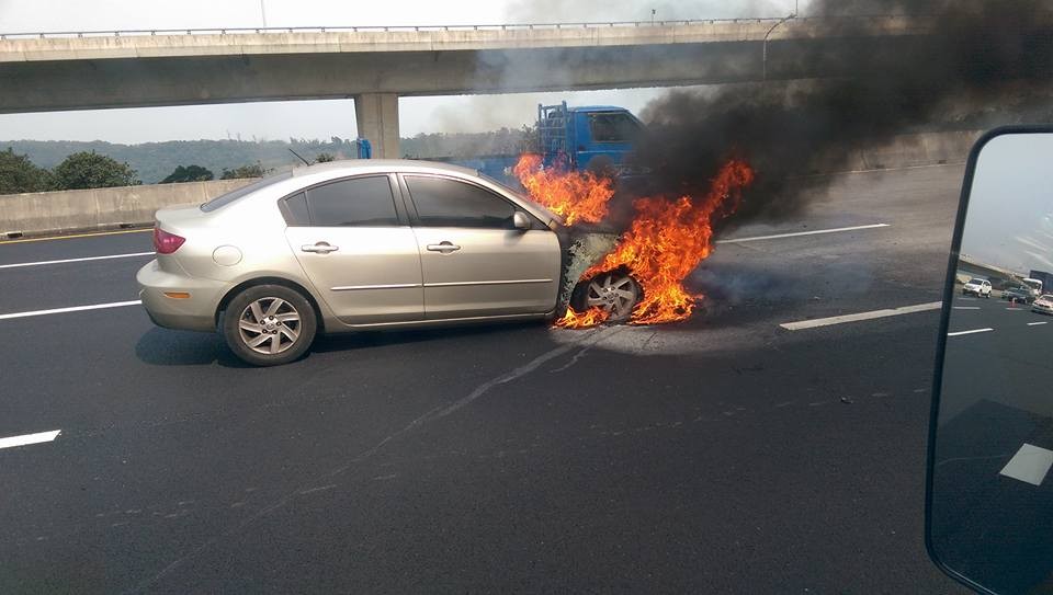 今天(4日)國道1號很不平靜,早上7點多南下9.2公里處8台小客車和遊覽車相撞,車輛回堵嚴重,北上44.3公里處,林口 至桃園段10點30分左右傳出有一台馬自達轎車火燒車意外,造成車輛嚴重回堵,警消目前已經到場處理,詳細事故原因有待調查,提醒用路人行經此路段,要特別小心。