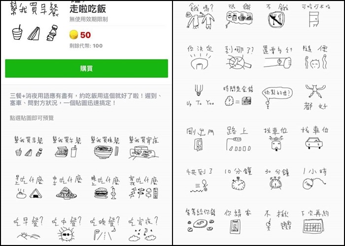 這個號稱最實用的LINE貼圖,在網路發燒!簡單的食物手畫圖,加上日常生活與身邊朋友邀約的對話句,「幫我買早餐」、「還要多久」等,讓許多網友轉貼這個原創貼圖,直說「實在太實用了!」