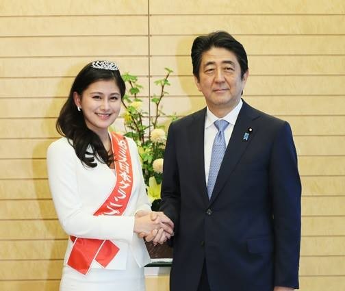 ▲安倍晉三接見「日本小姐」松野未佳。(圖/翻攝自日本首相官邸粉絲專頁)