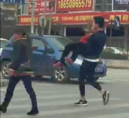 ▲長腿暖男「公主抱」阿婆過馬路!(圖/翻攝自新浪福建,下同)