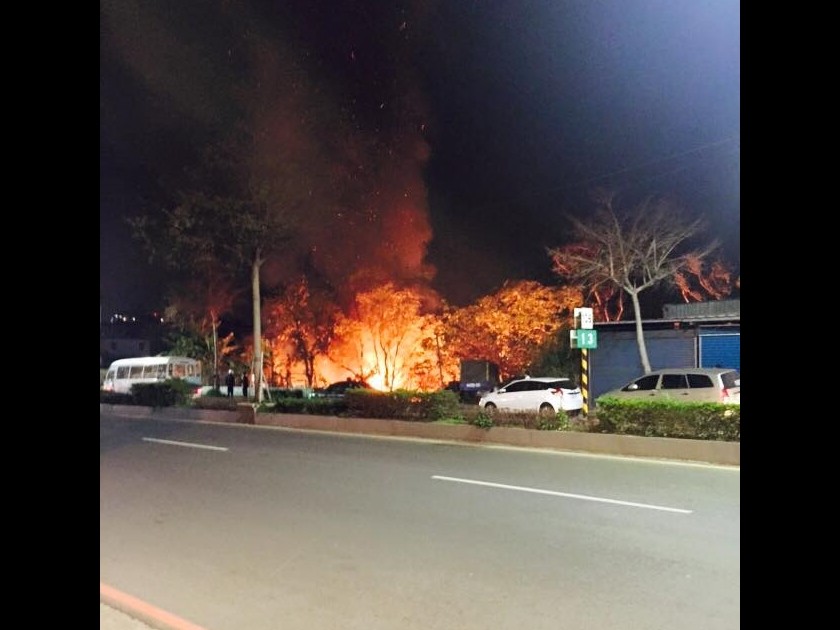 ▲林口火燒車,一旁樹林遭殃。(圖/翻攝自爆料公社)