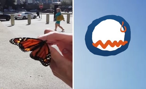 影片中,女子小心翼翼地將蝴蝶從盒子中拿出,準備讓牠飛回大自然的懷抱,但蝴蝶似乎還沒做好準備,怎麼樣都不肯離開,在女子抖了抖手指之後才緩緩地飛向藍天,一旁幫忙拍攝的人也跟著拍手祝福。