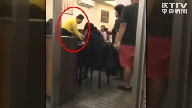 怕事情鬧大,阿姊趕緊把同事帶走,「不是啦,人家都在等啦,起來啦。」「拜託一下啦,我也很餓啊!」排隊客人看不下去,也出聲表達不滿。在台灣,排隊是基本素養,不過開在新莊這間牛排店,黃衣男子竟然打著「里長少爺」名號,不理會乖乖排隊的客人,插隊強行入座,其他客人氣不過,拍下影片PO上臉書「爆料公社」。