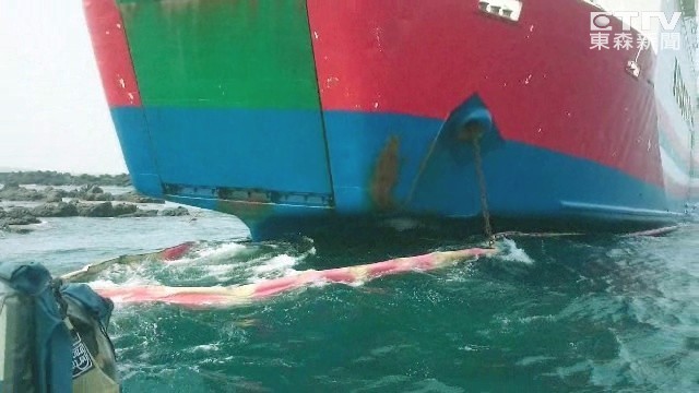 交通部航港局表示,位於太平洋南方庫克群島的自由經貿小國紐埃籍的「耘海」貨輪,自大陸福州駛往印尼港口,新船才剛下水就開上礁岩,該船116公尺長、21公尺寬、8575噸重,僅載有重柴(燃)油145噸,並無其他貨物。不過,7日卻傳出有油汙流出;海洋公民基金會人員表示,「你看前面那邊滿多油汙的,這個漏油的狀況是滿嚴重的。」