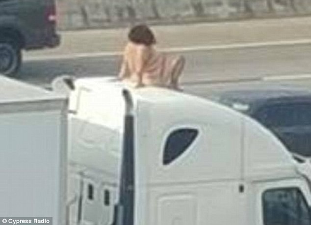 從空中拍攝的影片顯示,其他車輛都減慢車速,好奇觀看這名在大貨車車頂大鬧的裸女。 當局不曉得這名裸女為何爬上車頂。