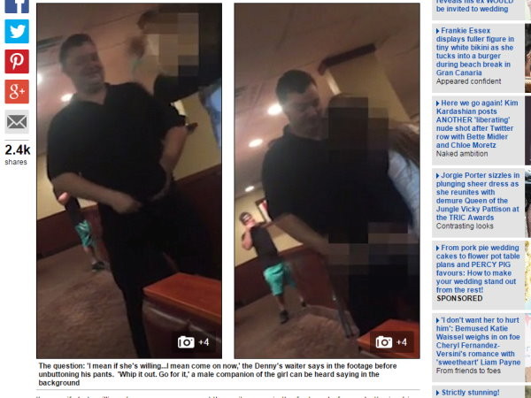 ▲美國一名女子當眾幫餐廳男服務生口交,稱說這是給他的小費。(圖/翻攝自每日郵報)