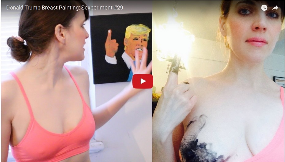 女藝術家艾咪•戴維森(Aimee Davison) 利用自己的一雙咪咪當作畫筆,為最近紅得發紫的美國政治名人川普創作了一 幅肖像畫。