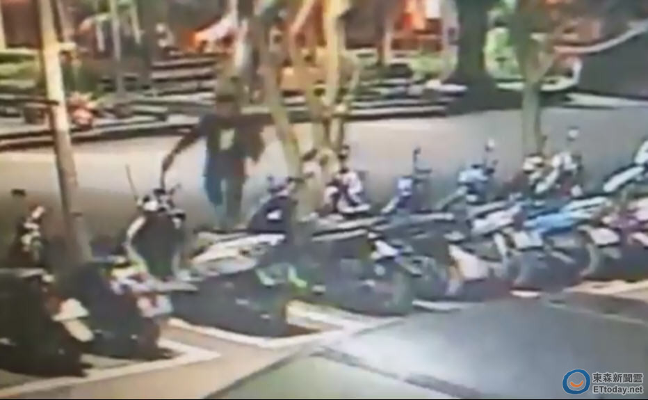 ▲黃姓男子將汽油淋在被害人機車上,點火後立即拔腿狂奔逃跑。(圖/記者楊佩琪翻攝)