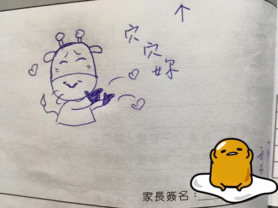 究竟是什麼樣的內容讓這名老師直呼「超可愛」?原來是家長在幼童的連絡簿畫上可愛的塗鴉,甚至還用蛋黃哥來增添文字想表達的意思。