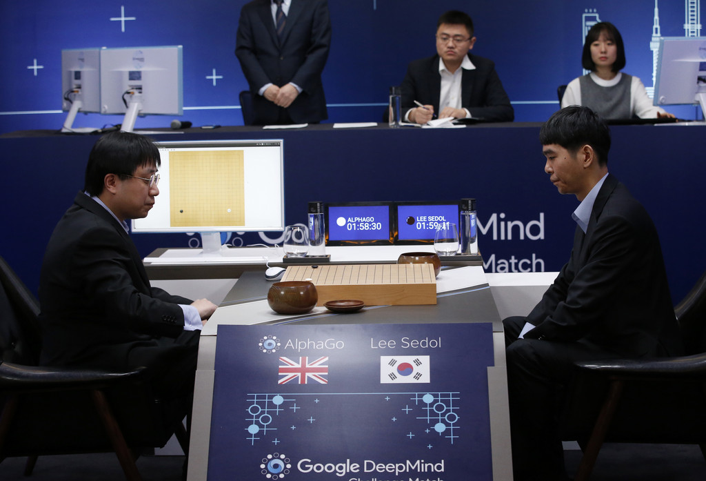全球矚目的「人機大戰」:世界圍棋冠軍、南韓名將李世乭(台灣誤寫為李世石)跟Google利用人工智慧研發的圍棋程式「阿爾法圍棋」(AlphaGo)首盤對弈結束,李世石在賽事進行了3個半小時後棄子認輸,在5戰3勝制比賽中暫時以0比1落後。