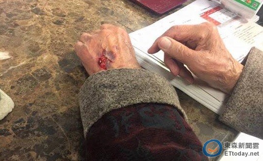▲▼老爺爺搭公車不慎摔傷流血。(圖/劉小姐提供本報使用,請勿隨意拷貝。)