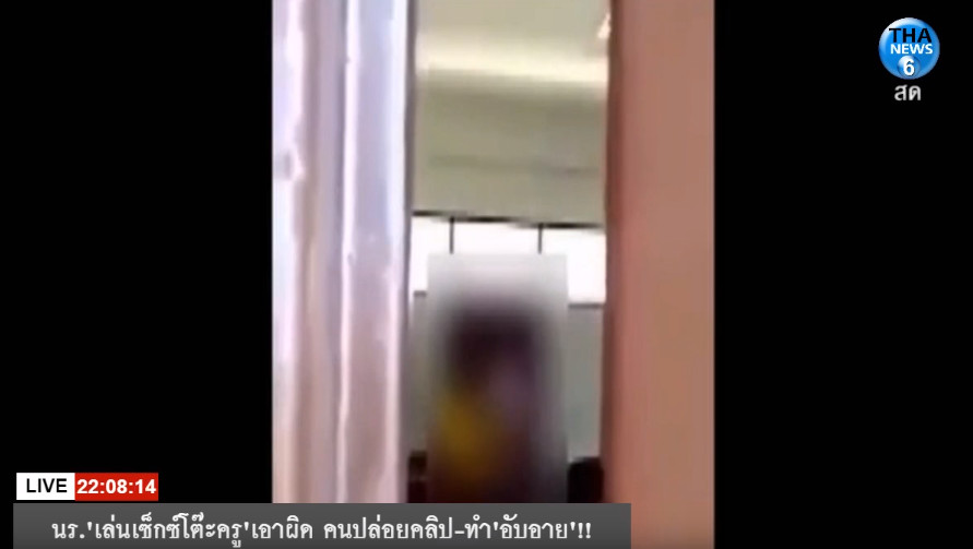 泰國這對中學生情侶趁著教室空無一人的時候,在老師專用桌上大膽做愛,全部過程被同學偷偷拍了下來,還在網路上公開而轟動校園。目前當地警方正追查上傳影片的嫌犯;雙方父母也向學校求情,希望別對小情侶做出退學的處分。