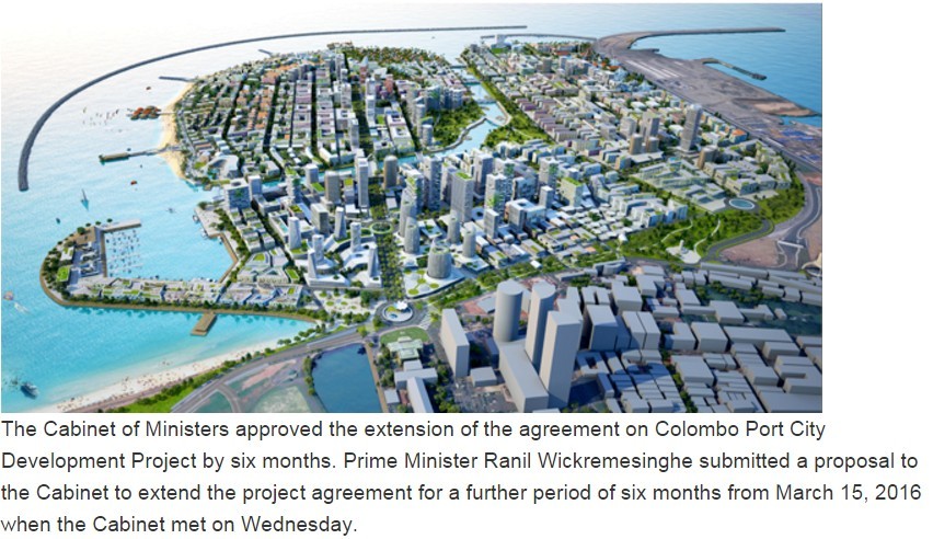 由中國交通建設集團投資開發的「可倫坡港口城」建設,早在2014年9月便啟動興建,項目包含商業體育設施和住宅區等等,投資額高達15億美元,怎料2015年斯里蘭卡新總統西里塞納(Maithripala Sirisena)上台後,忽然痛批前總統親中政策,並停止中國大陸繼續興建港口城,一度讓雙方關係降至冰點。