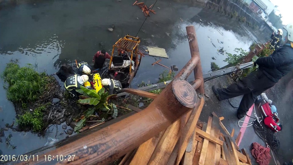 嘉義市政府消防局昨(11日)天下午15時51分接獲報案,指稱有堆高機掉落圳溝!抵達現場發現是一輛堆高機墜落大排,駕駛被壓住,困在水底,經吊掛搶救後,當場已無生命跡象,緊急送醫急救,經搶救後恢復心跳,但仍有生命危險。