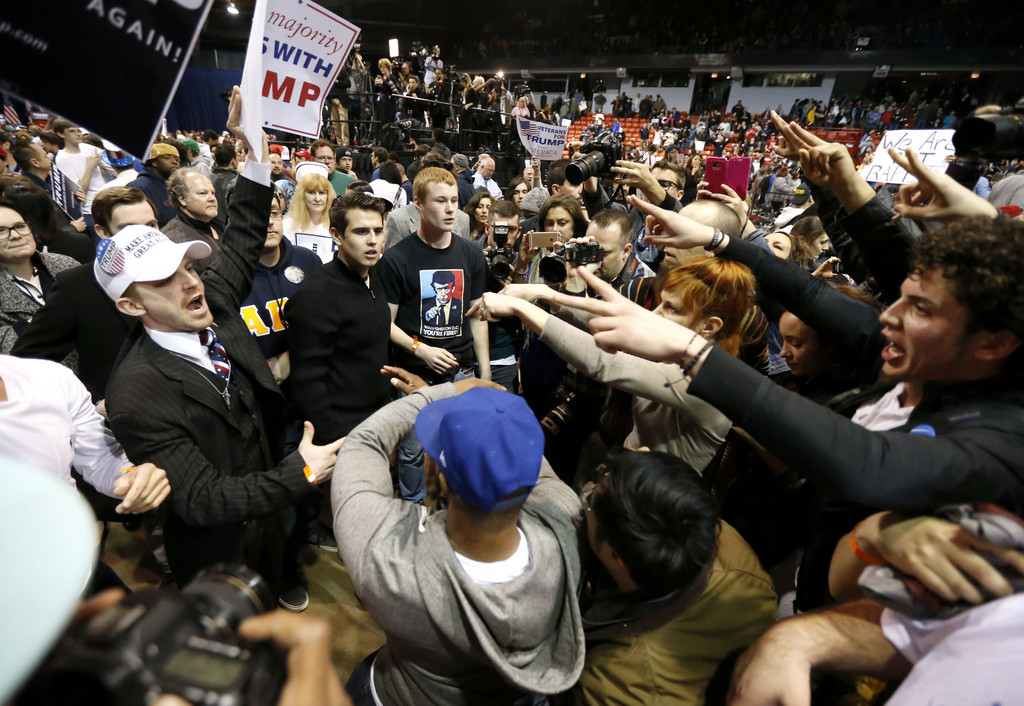 宣傳活動是在伊利諾大學芝加哥校區的體育館舉辦,支持川普與反對的人潮擠滿現場。川普人氣一路攀升,在美國總統大選共和黨的初選也居於領先位置,不料卻在民主黨占優勢的芝加哥,發生支持者與反他的民眾爭執,不時相互推擠,場面混亂,一度反川普的民眾甚至霸占了發言台,動手拆掉了競選看板,幸好在警方的介入處理下,區隔有衝突的民眾,最後讓大家離開會場。