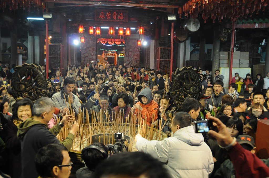 ▲南瑤宮香火鼎盛,但為了減少空氣汙染已經改採放電子炮並減少香爐數。圖為除夕夜舉辦的搶頭香活動。(圖/彰化南瑤宮網站)