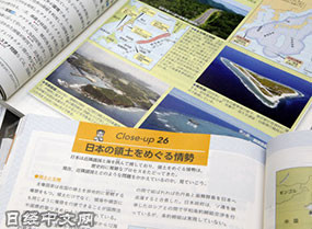 報導指出,文部科學省18日公布2017年高中教科書審定結果,內容關於領土的篇幅增加約60%,不但詳細介紹釣魚台及竹島歷史,也將這兩個島劃入日本領土,明年春季全日本高中1、2年級學生都會使用這本最新版教科書。
