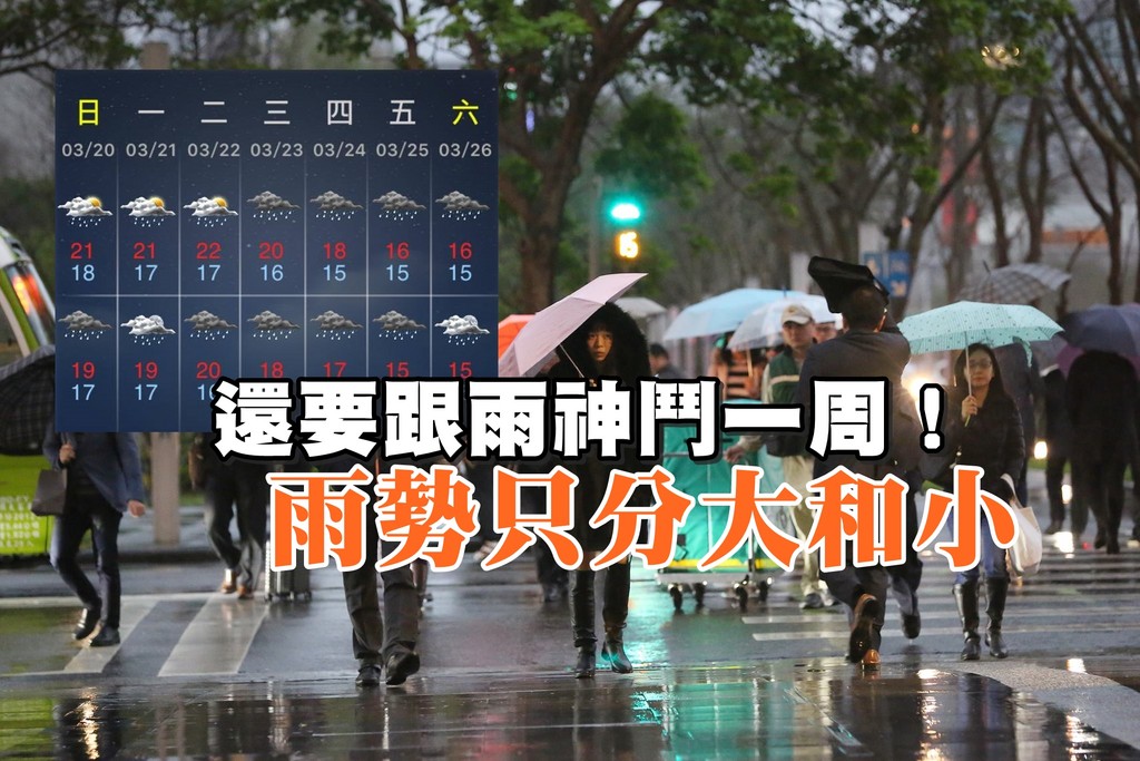 春天孩子面,雨還要下一周。中央氣象局表示,台灣海峽中部對流雲系發展旺盛,雲嘉南地區將有局部較大雨勢發生,且未來水氣仍偏多,20日又有華南雲雨區東移,不但迎風面有短暫雨,中南部地區也可能出現短暫雨,天氣系統變化相當快速,未來一周降雨只有「明顯」與「不明顯」的差異。
