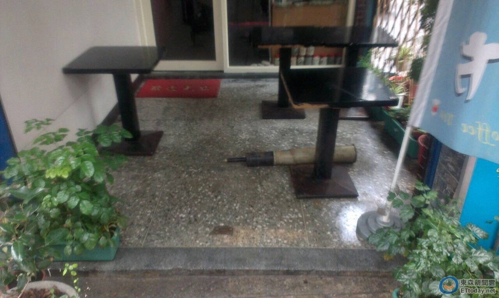 ▲咖啡店門口日前發現一枚已擊發的彈殼。(圖/記者孫曜樟翻攝)